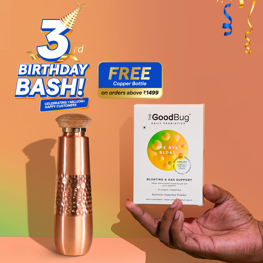Partial bowel clearance or constipation makes it harder for the gas to pass, leaving you feeling bloated and uncomfortable, in such a case we recommend taking the Good Bugs Smooth Move.