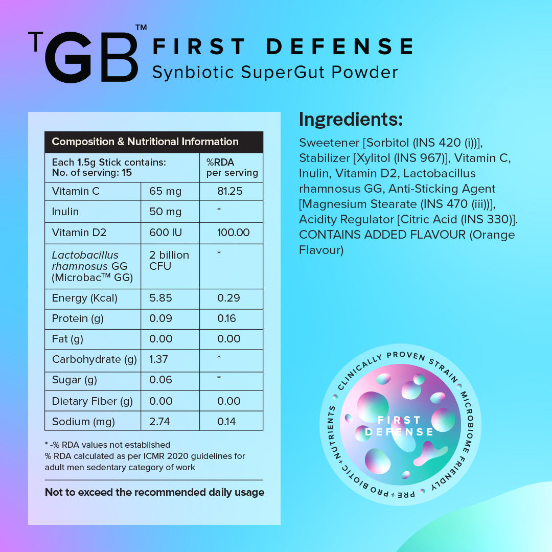 First Defense targets the root of low immunity by fostering a healthy gut microbiome, acknowledging the critical insight that about 70% of immunity resides in the gut. This meticulously formulated blend strengthens the body's immune defenses from the inside out, providing a comprehensive and enduring approach to health.