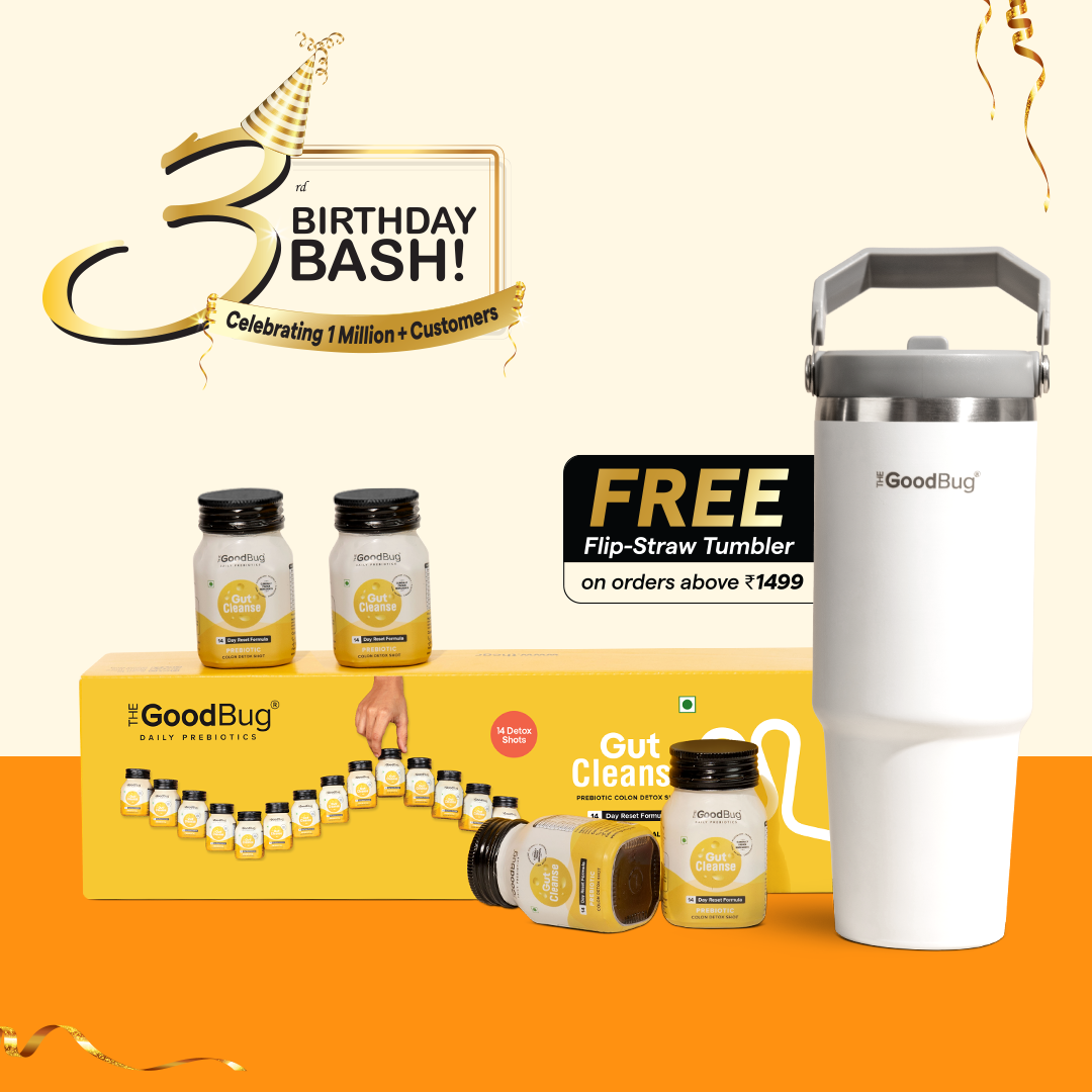 Our gut detox shots are formulated with a blend of prebiotics such as FOS and glucomannan (in debittered fenugreek) and herbs such as kokum, rosemary, cumin along with triphala and green tea extract help to support your body's natural detox process. Prebiotics nourish beneficial gut bacteria, while herbs and other ingredients aid in thorough cleansing. By preparing your gut for probiotics, these shots can enhance your overall health and effectively manage your symptoms.