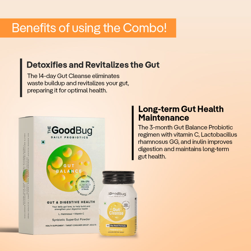 This powerful combo of Gut Cleanse Shots and Gut Balance SuperGut Sticks can help detoxify, reset, and strengthen your gut health for long-term well-being.