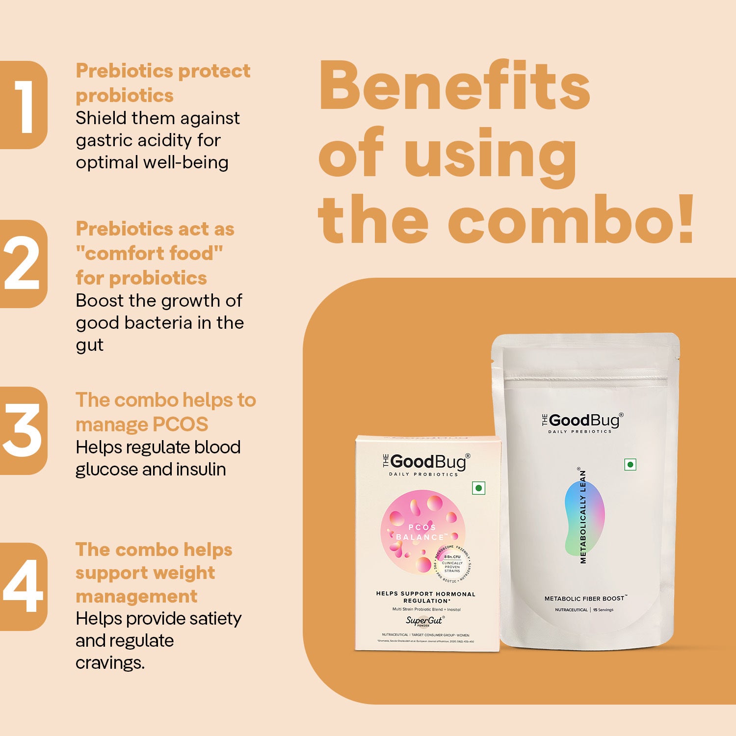 - The synergy between probiotics and fiber, with fiber acting as a prebiotic, holds the potential to significantly benefit individuals with PCOS. One key aspect of PCOS management involves maintaining healthy blood sugar levels and improving insulin sensitivity. By increasing fiber intake, we support the growth of beneficial gut bacteria, creating an environment conducive to better glucose and insulin regulation. This dual approach of probiotics and fiber can play a vital role in effectively managing PCOS symptoms.
