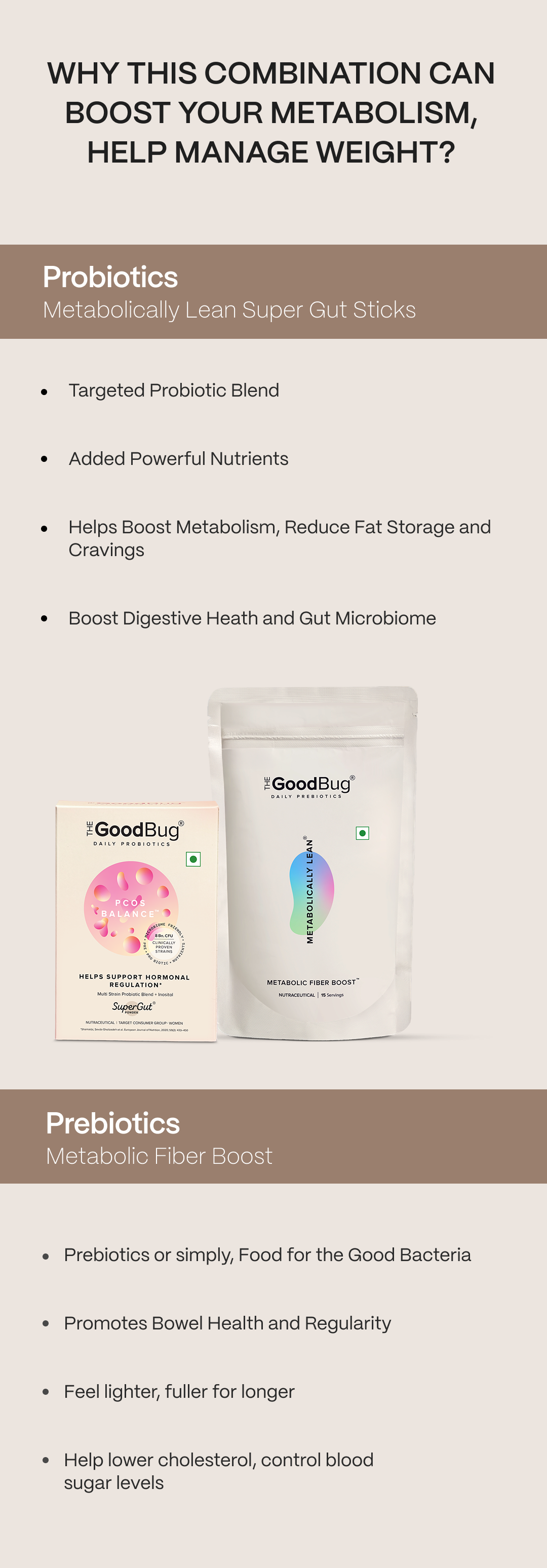The combination of probiotics and fiber fosters a balanced gut microbiome which may help to enhance metabolic health, reduce insulin resistance and regulate blood glucose levels and support weight management.