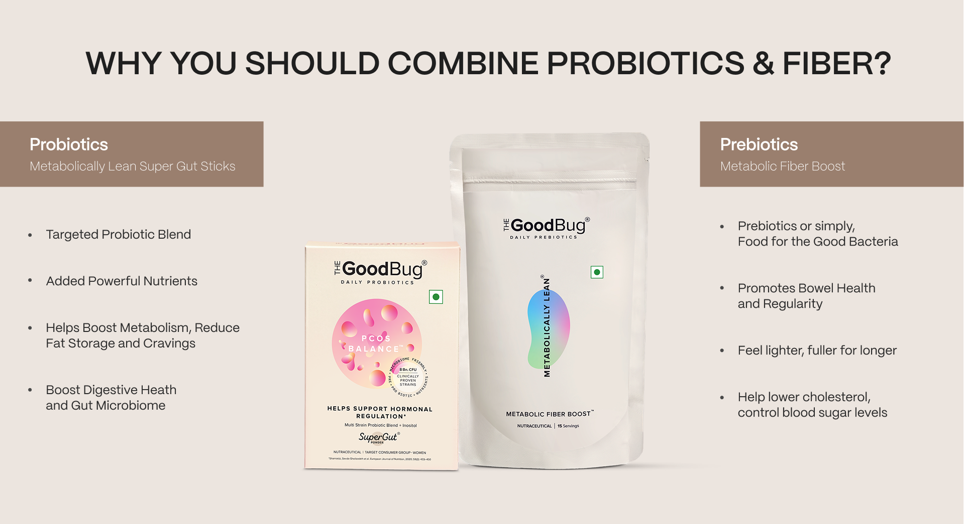 - The synergy between probiotics and fiber, with fiber acting as a prebiotic, holds the potential to significantly benefit individuals with PCOS. One key aspect of PCOS management involves maintaining healthy blood sugar levels and improving insulin sensitivity. By increasing fiber intake, we support the growth of beneficial gut bacteria, creating an environment conducive to better glucose and insulin regulation. This dual approach of probiotics and fiber can play a vital role in effectively managing PCOS symptoms.