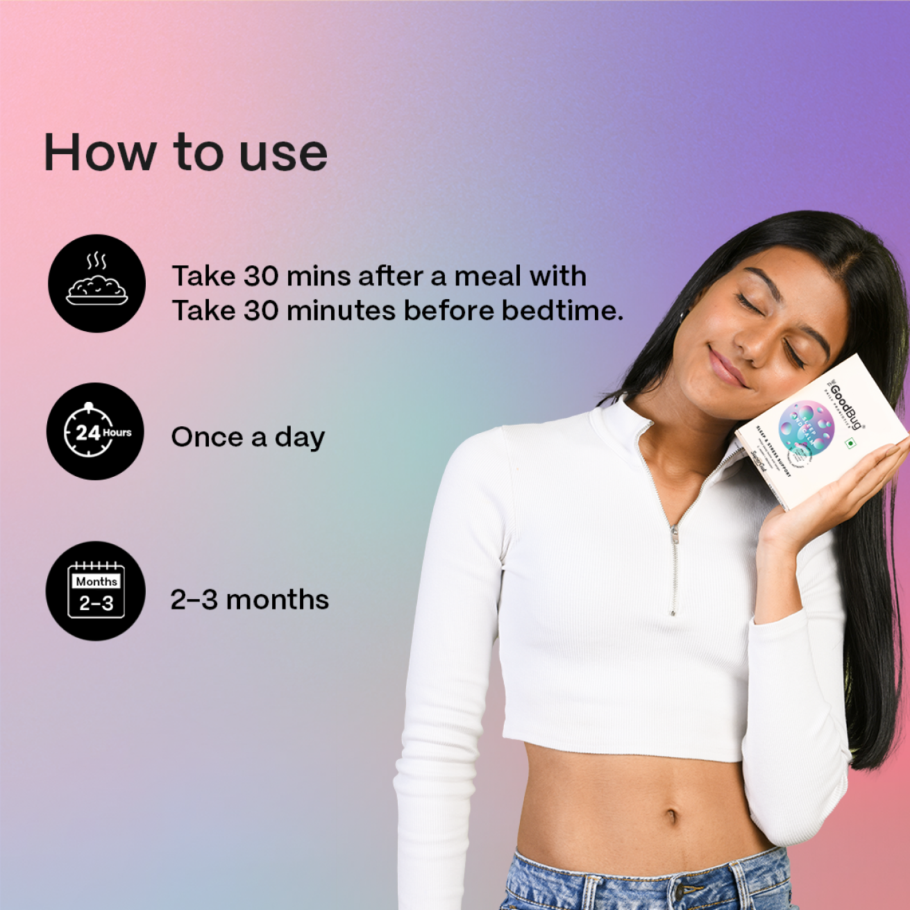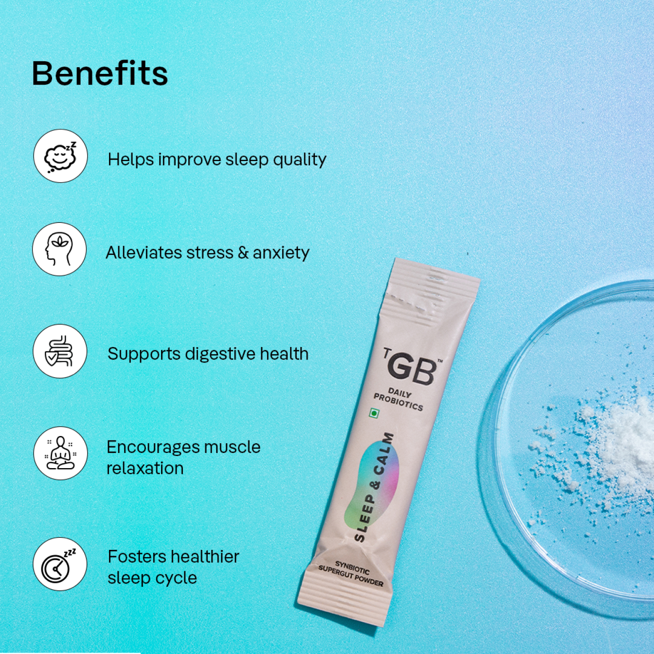 "Sleep & Calm" delves into the core issues of sleeplessness by nurturing a balanced gut microbiome, presenting a fundamental strategy to enhance sleep from within. This carefully crafted blend bolsters the body's innate relaxation mechanisms, offering a lasting and holistic solution for achieving consistent, high-quality sleep.