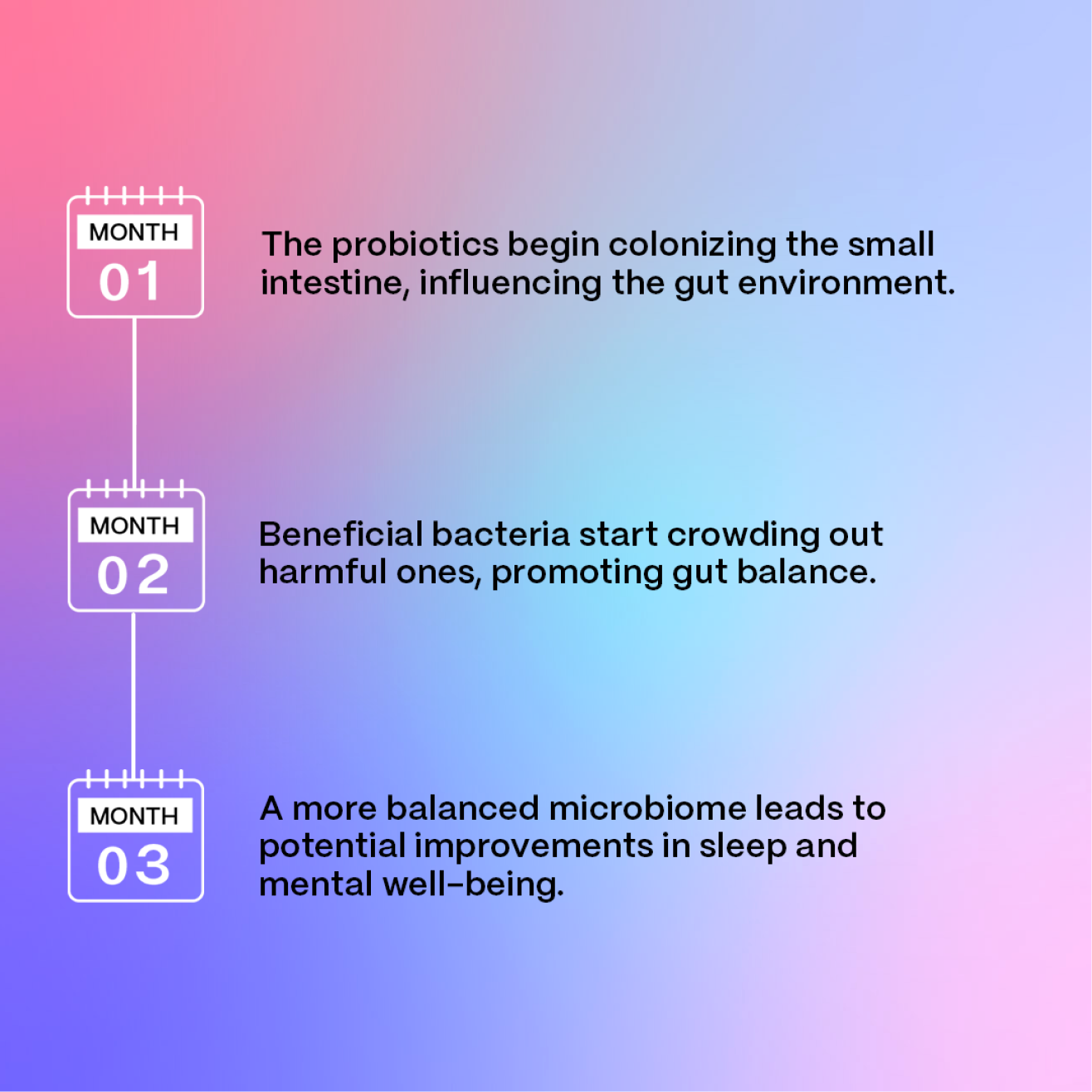 Probiotics like L. reuteri in Sleep & Calm are specifically chosen for their ability to support this intricate relationship. They enhance gut health, which in turn, positively affects the brain's ability to regulate sleep patterns and reduce stress levels. This symbiotic interaction is foundational to achieving a harmonious state of well-being, making L. reuteri a key component in the formulation of Sleep & Calm, aimed at improving your sleep cycle and lowering anxiety for a more rested and tranquil lifestyle.