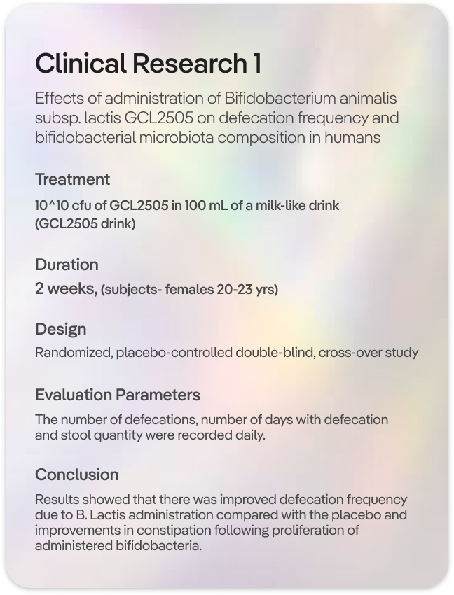 At its core is B. lactis, a potent probiotic that thrives in synergy with the prebiotics found in Smooth Move Fiber, significantly enhancing its effectiveness. These prebiotics not only promote the proliferation of B. lactis and other beneficial bacteria but also act as a protective shield against gastric acidity, ensuring a higher survival rate and ultimately leading to enhanced gut health.