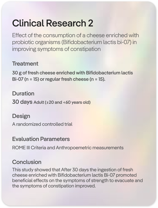 A probiotic known to improve the frequency and ease of bowel movements, and consistency of stools. It also provides relief from abdominal cramps.